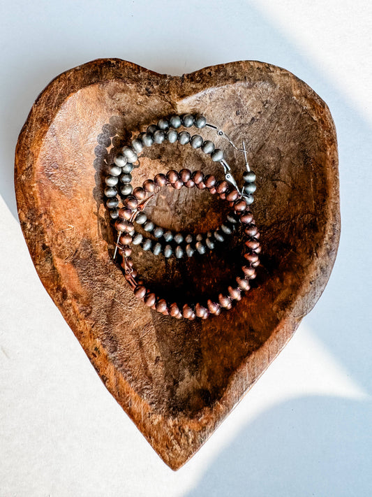 2.35” Navajo Pearl Hoops Earrings: Silver