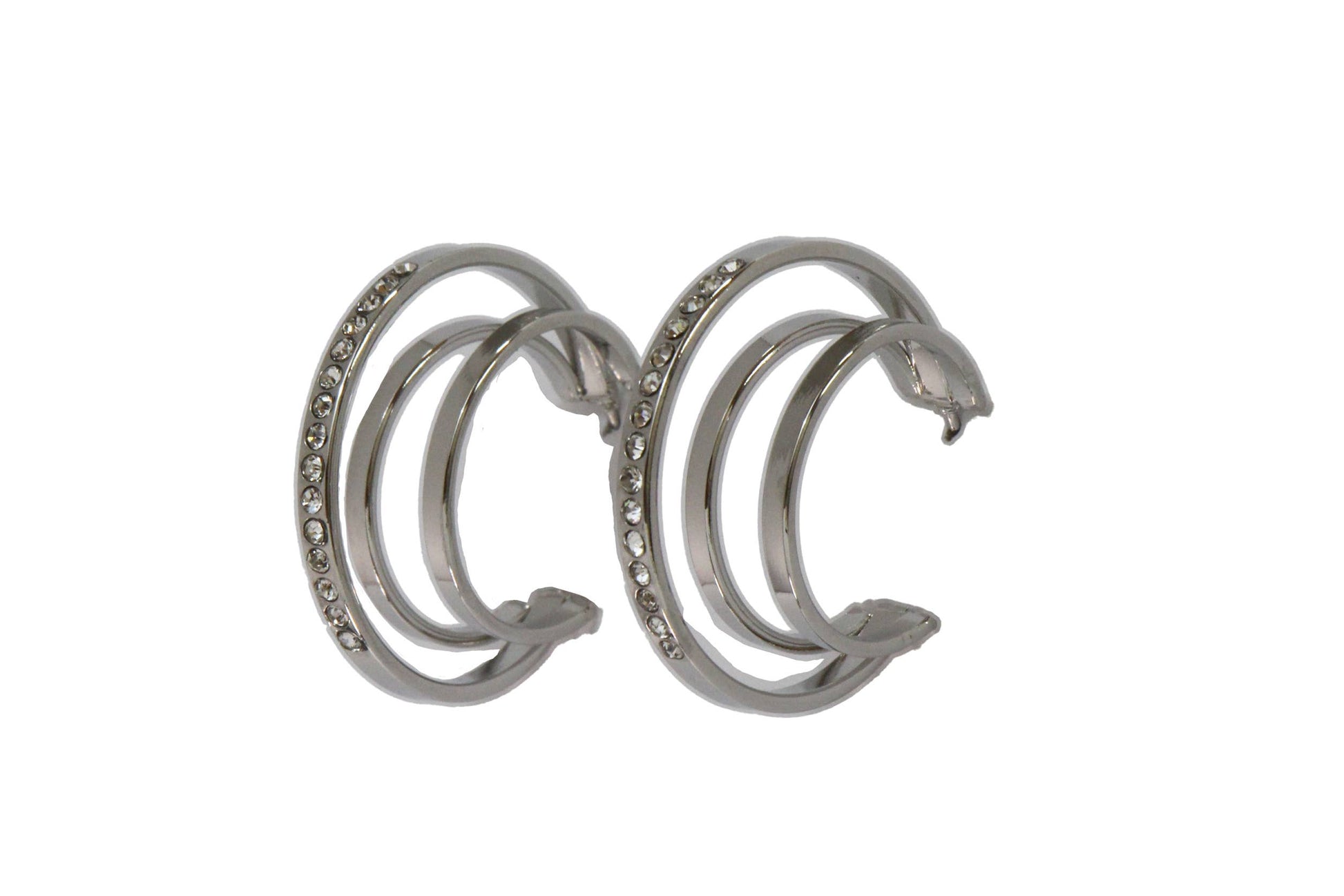 Discover the elegance of our 1" Silver and Rhinestone Multi Hoop Earrings from West & Co. These hoops shine with the addition of sparkling rhinestones, bringing a touch of sophistication to any outfit. Crafted with meticulous attention to detail, this piece reflects the brand's dedication to creating trendy yet affordable jewelry. Designed by Kallie Jo Bearden, these earrings embody a unique style that transcends age groups. Add a touch of sparkle to your collection with these versatile hoop earrings.