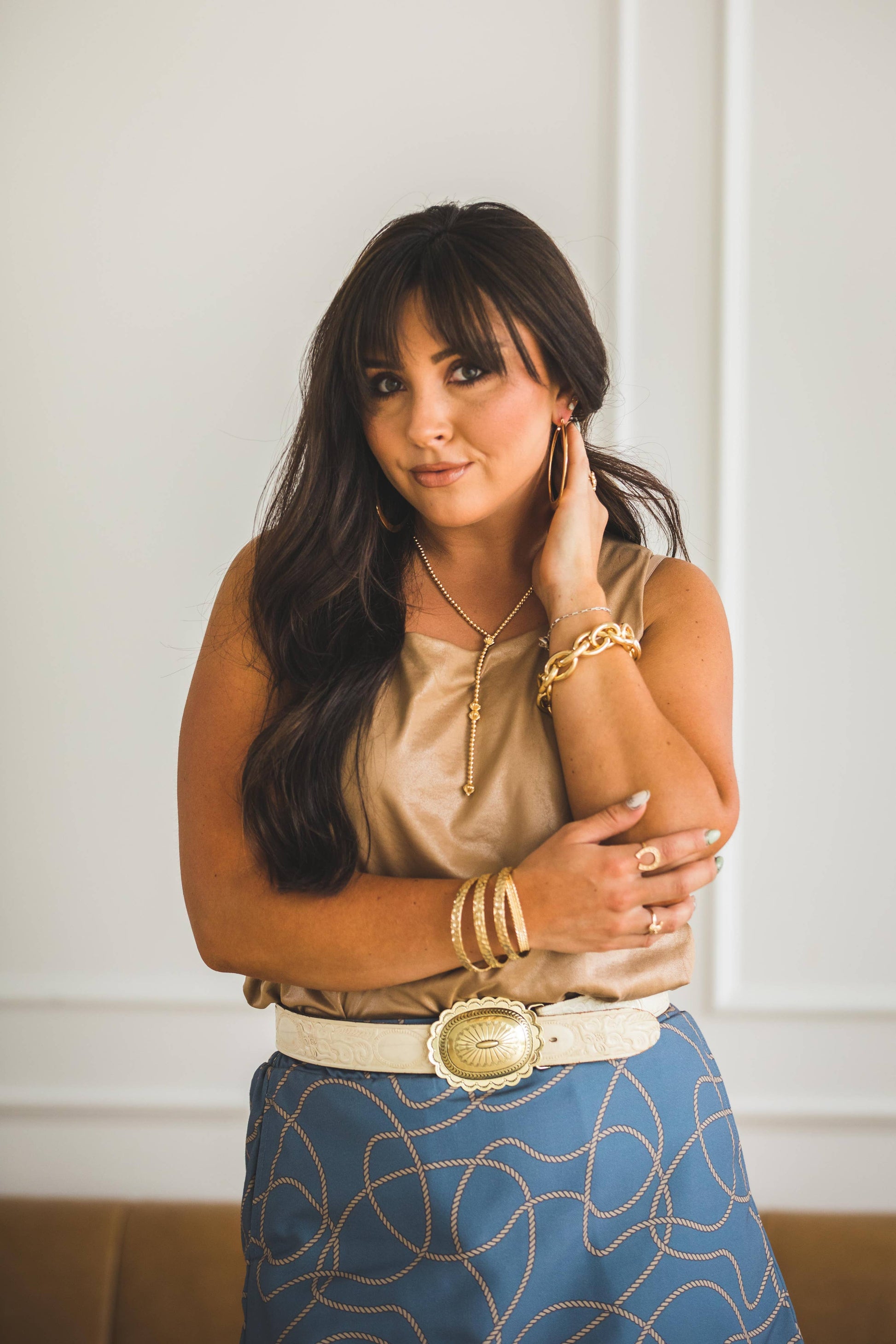 18" 18K Gold Plated Beaded Y Necklace with 5" Tail: White Gold