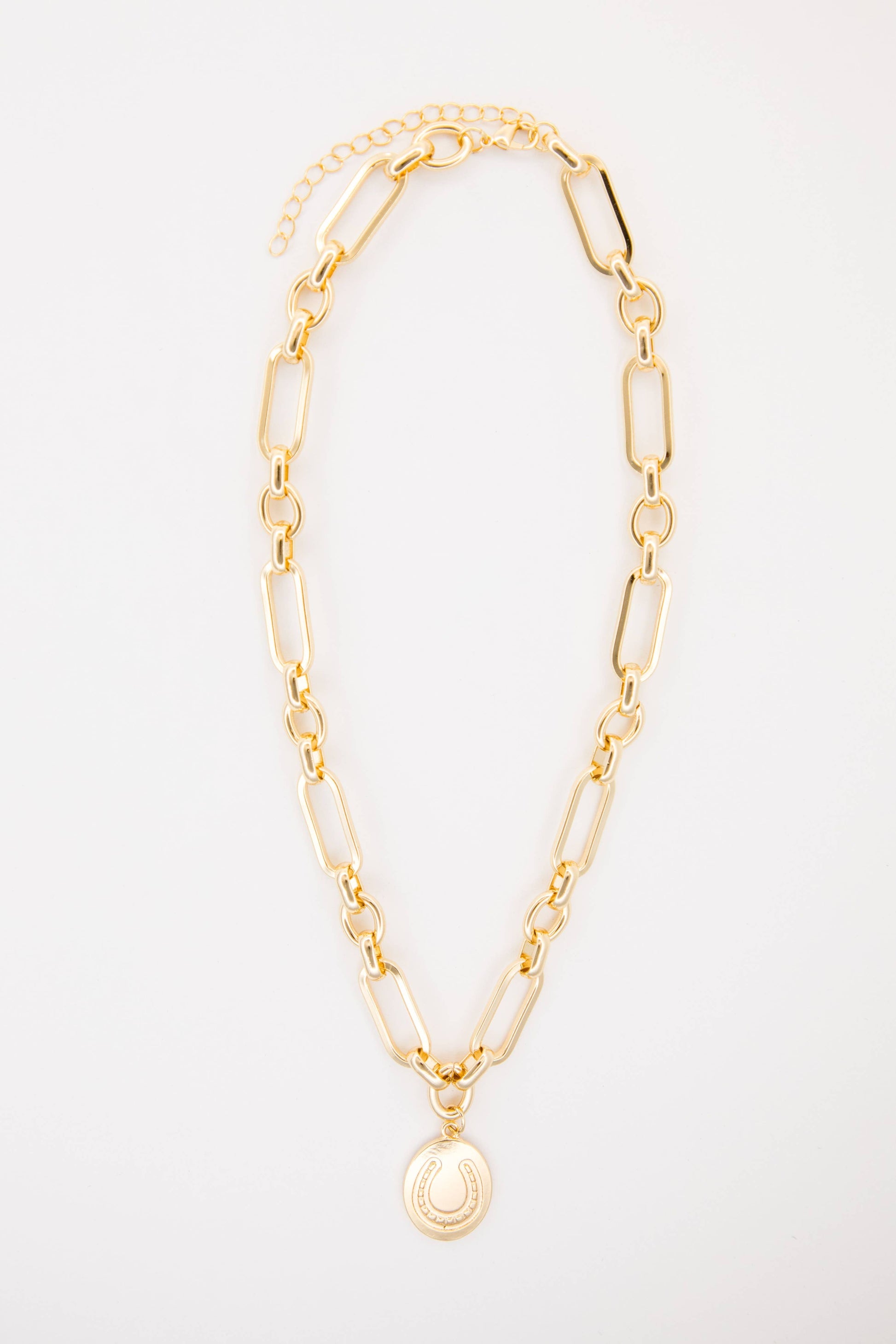 18" 18K Gold Plated Chain Necklace with Horseshoe Pendant