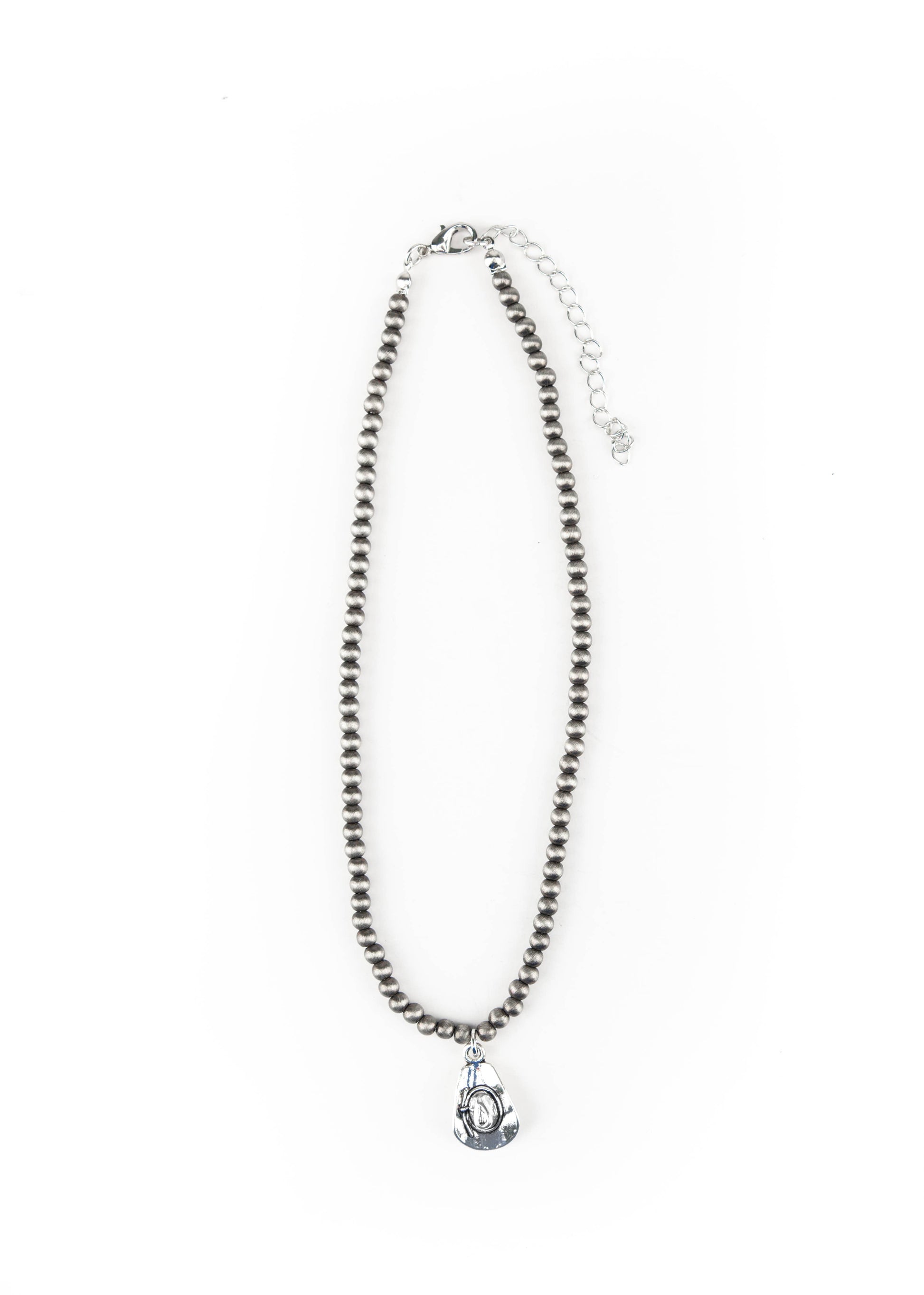 Dainty Faux Navajo Pearl Necklace with cowboy hat Charm