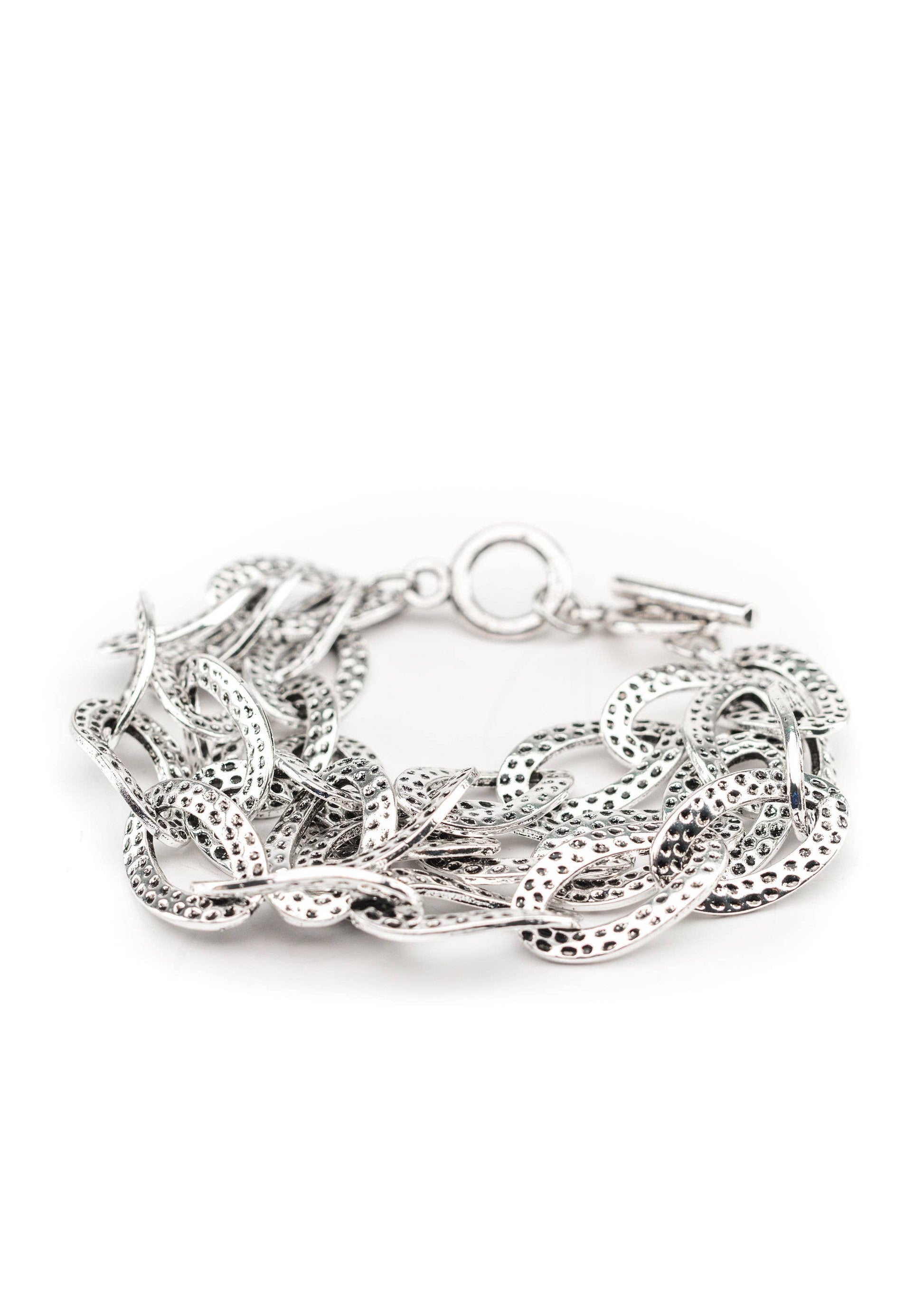 Hammered Silver three strand Chain Toggle Bracelet