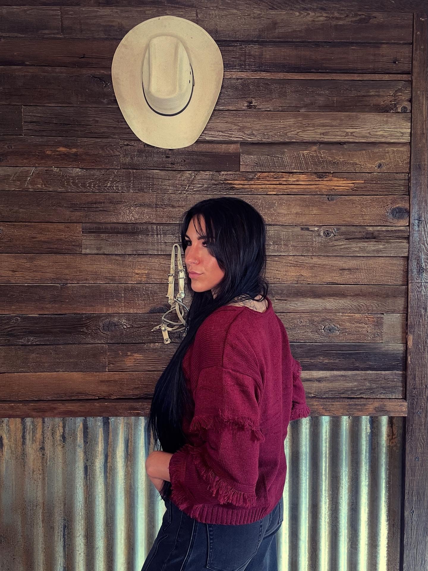 Tassels Solid Long Sleeves V-Neck Knit Top